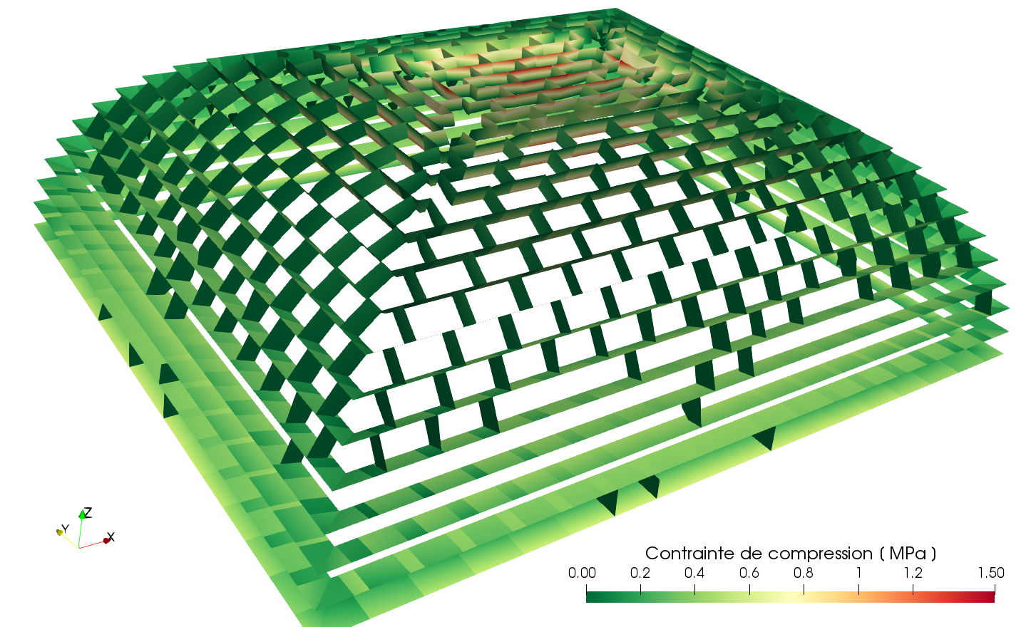 Visualisation du mécanisme de ruine sous chargement limite de la plate-bande (zone bleue)
